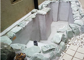 お客様からのご要望で、庭に池をつくりました。都内の家の庭に池だなんて本当に贅沢ですね。深さは1.5メートルあります。