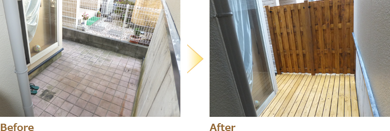 素敵な箱庭があるのに、あまり使用されておらずもったいないとの相談を受け、ウッドデッキを作成いたしました。近隣の方に配慮し、目隠し壁を設置しました。メンテナンスのしやすい材料を選び、自社で加工及び塗装を施しています。