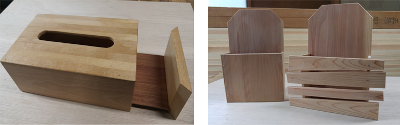 また、処分を頼まれたタンスをリユースして、状差しとティッシュケースを作成しました。捨てるのは簡単ですが、形を変えて再利用することで、品物の価値を得られると我々は考えています。共にタンスの処分を依頼したお客様に差し上げて、大変喜ばれました。