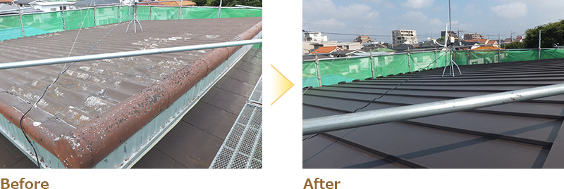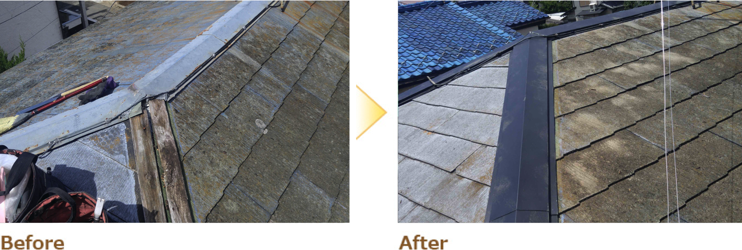 屋根の葺き替えと併せて外壁修理、塗装工事を施工致しました。同時に実施することでコストの削減ができお客様に大変喜ばれました。
