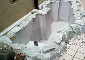 お客様からのご要望で、庭に池をつくりました。都内の家の庭に池田なんて本当に贅沢ですね。深さは1.5mあります。